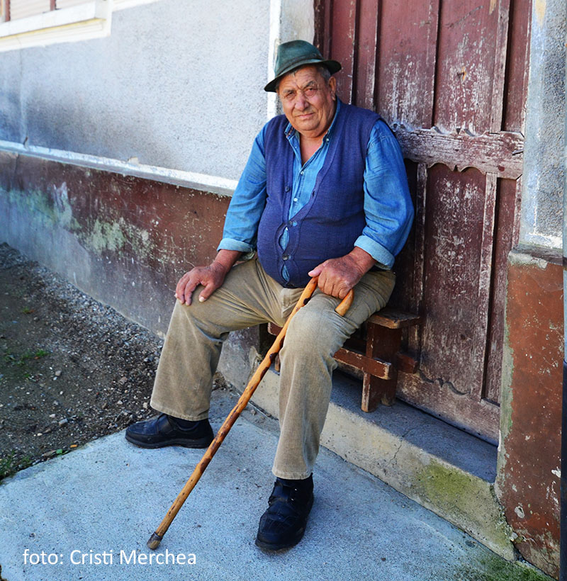La poartă (porțile din Ardeal au specificul lor), un bătrân stă sprijinit în toiag și privește la noii sosiți. Salutăm și ne invită să intrăm. E tatăl Mariei.