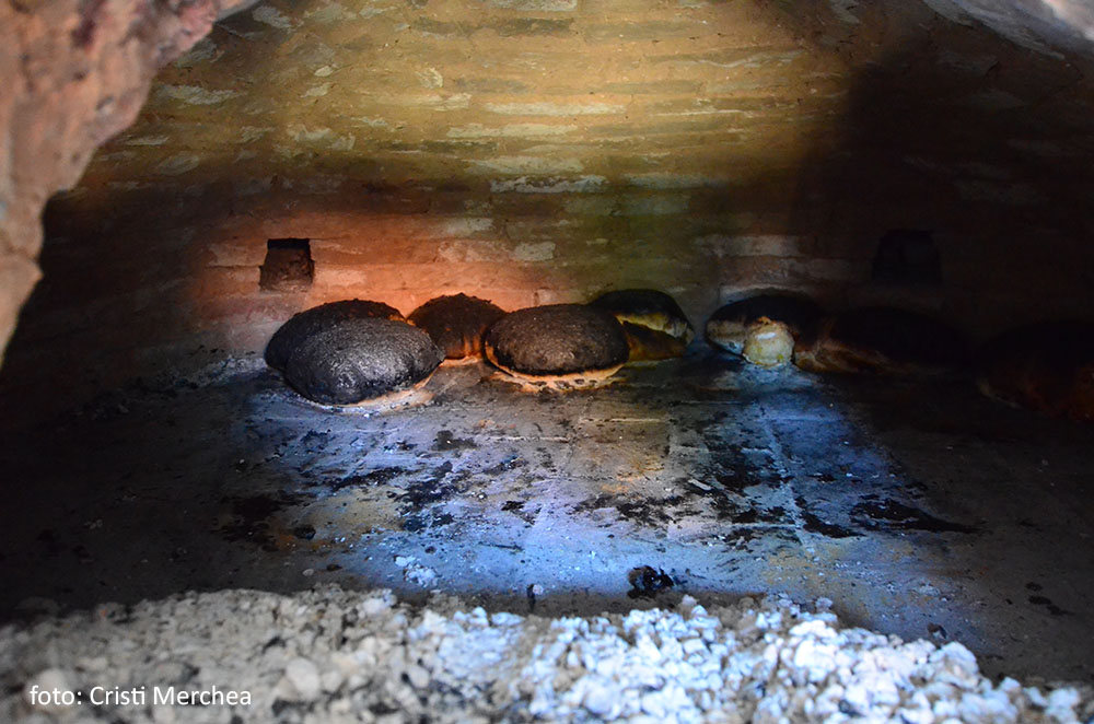 Pâinile fierbinți sunt bătute cu secera sau cu un retevei de Maria și de vecina cea în vârstă, Maria Betum, pentru a le da coaja cea neagră jos.