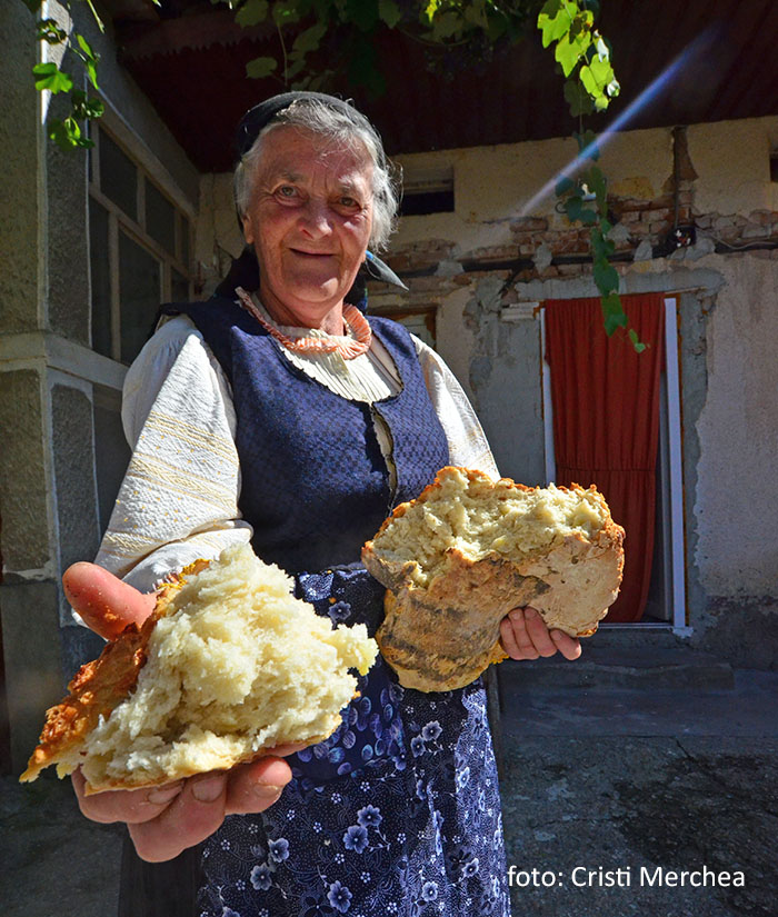 Într-o zi însă Maria a decis să se întoarcă acasă. Spirit creator, activ, mereu dornică să facă ceva dar mai ales să reînvie ceea ce majoritatea au pierdut sau ignoră pur și simplu, Maria a luat taurul de coarne și și-a suflecat mânecile: a făcut un cuptor mare din cărămidă în care coace o pâine la fel de mare, pufoasă, cu cartofi, așa cum se făcea odată și cum încă se mai face pe ici, pe colo, prin unele zone. Cu noaptea-n cap se trezește, frământă, coace, pune la cuptor apoi, scoate pita, bate cu secera coaja cea neagră și, „primenită” pentru clienți, pâinea o duce la Făgăraș sau Brașov. E multă muncă dar nu se plânge pentru că ei asta îi place: munca.