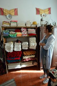 Maria ne vorbește cu patos despre munca ei, despre cât de drag îi este să facă ceea ce face. Și nu e singurul lucru: la Căminul Cultural a amenajat un muzeu al satului cu toate cele avute în gospodărie sau primite de la prieteni. Nu lipsesc dulapurile pline cu cusături și albituri, costumul de mire al tatălui său, uneltele vechi de muncă sau zestrea de pe pat… E un muzeu făcut cu drag așa cum face ea toate lucrurile.