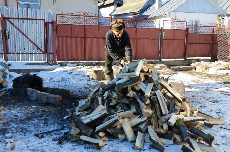 Pe moș Ghiță Celmare l-am zărit în curte. E iarnă (ianuarie 2017) dar taie lemne de zor. Îl întrebăm dacă putem să-l fotografiem și nu zice nu. Așa că intrăm în vorbă și aflăm multe.