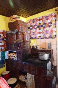 Soba din cotrună, cu rola unde se usucă lemnele
