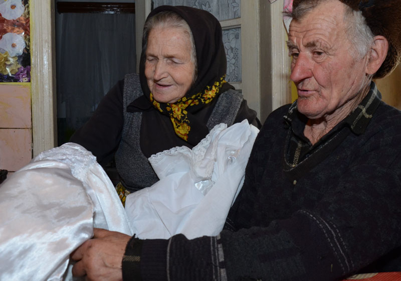 Și ne aduce ceva cum nu rar, ci rarisim, am mai putut vedea. Este o operă de artă făcută de mâinile acestei femei care s-a pregătit de moarte cu minuțiozitatea unei pregătiri de nuntă. Trecerea dincolo este la fel de importantă pentru sovejeni ca orice moment al vieții. Iar straiele pe care trebuie să le îmbrace obligatoriu e să fie la fel de găticioase, de arătoase și frumoase în fiecare detaliu pentru ca oamenii, dar și cei care-i vor primi „dincolo”, să se uite cu drag la ei. Așa cum au fost în viață, așa și dicolo.