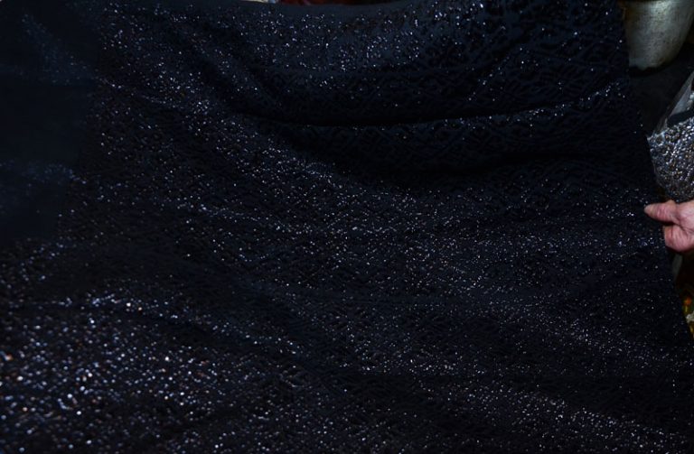 Ne arată cum vopsea lâna în degradé, pe „risichitor”. Explică cu calm, cu răbdare, ca și cum ar vopsi acum firele pe care odată le făcea pentru a crea fuste. Fuste „revoluționare” am spune acum, modele noi pe care le-au prutat femeile în sat mândre că nu sunt ca toate celelalte. La prima vedere am crezut că-s industriale, făcute de mașini, atât de bine colorate , uniform, cu țesătura impecabilă, ca cea de la marele case de modă. Dar adevărata operă de artă, cu care Versace sau Valentino ar face furori, e fota de moarte. O țesătură deasă, din cânepă fină, neagră corb, vopsită natural și împodobită cu motive geometrice din mătase neagră. Un gust și un rafinament cum rar ne-a fost dat pe unde am fost și văzut. O mândrie pentru moașa Maricica pentru că va merge „dincolo” gătită cum trebuie.