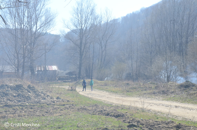 Câteva case abia de văd de fumul care se ridică de la gunoaiele care ard. Cum dă colțul urzicii iar soarele încălzește pământul, oamenii ies cu altă bucurie afară. Și au și de ce. Malurile apei sunt pline de materiale plastice, haine putrede, bidoane, găleți și tot ceea ce omul aruncă în amonte, în speranța că apa va duce, departe de ochii săi, mizeria de care s-a debarasat.