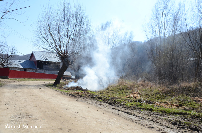 Pe Maricica Grigoraș am deslușit-o printre fumurile primăverii. Nu mai e la prima tinerețe dar încarcă furca cu sârg și o duce dincolo de o movilă. În iarnă a ținut aici o căpiță cu fân pentru animale iar acum trebuie să fie curat.