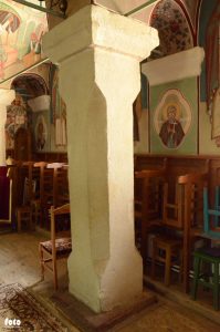 O femeie simplă, care, într-o zi de duminică, ne invită să vedem biserica goală. Ar fi vremea slujbei dar astăzi se ține la cealaltă biserică, ne spune. O duminică aici, una la cealaltă. Și așa aici vin 20-30 de persoane. Nu mai sunt oameni primprejur. O singură familie mai locuiește alături, restul sunt persoane singure, în special bătrâne. Iar mica bisericuță, construită de călugării greci pe la 1850-1858 și închinată Muntelui Atos, o duce așa cum poate. Altarul este cel vechi iar pictura ne învăluie sufletele cu frumusețea și blândeșea ei. Și restul interiorului a fost pictat cu grija culorilor și a stitlului. Stâlpi din piatră masivă țin această creație de mai bine de 150 de ani pentru un sat care încet-încet piere.