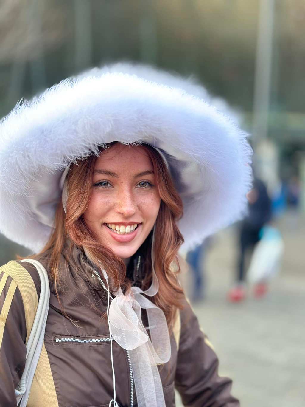 In autobuz pălăria ei a avut cele mai multe “vizualizări “. Așa că, la coborâre, am întrebat-o daca e de acord să o fotografiez. A zis imediat „yes”… zâmbet inclus.