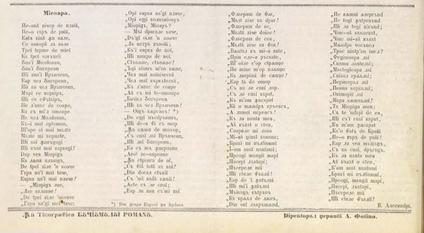 Vreți să vedeți cum arăta balada „#Miorița” publicată pentru a doua oară, în ziarul „Zimbrul” din 28 august 1850, după ce, primită de la #Alecu_Russo, #Vasile_Alecsandri o publicase în secțiunea Cântece poporale românești din gazeta „Bucovina” din Cernăuți (an III, nr. 11, sâmbătă, 18 februarie 1850)?