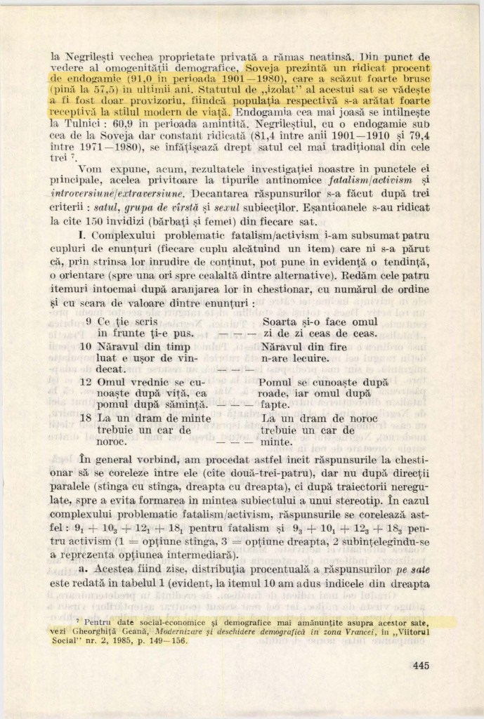 La baza acestui material stau și studiile realizate de profesorul universitar Gheorghiță Geană publicate în „Modernizare şi deschidere demografică in zona Vrancei”, „Viitorul Social” nr. 2, 1985, p. 149—156.