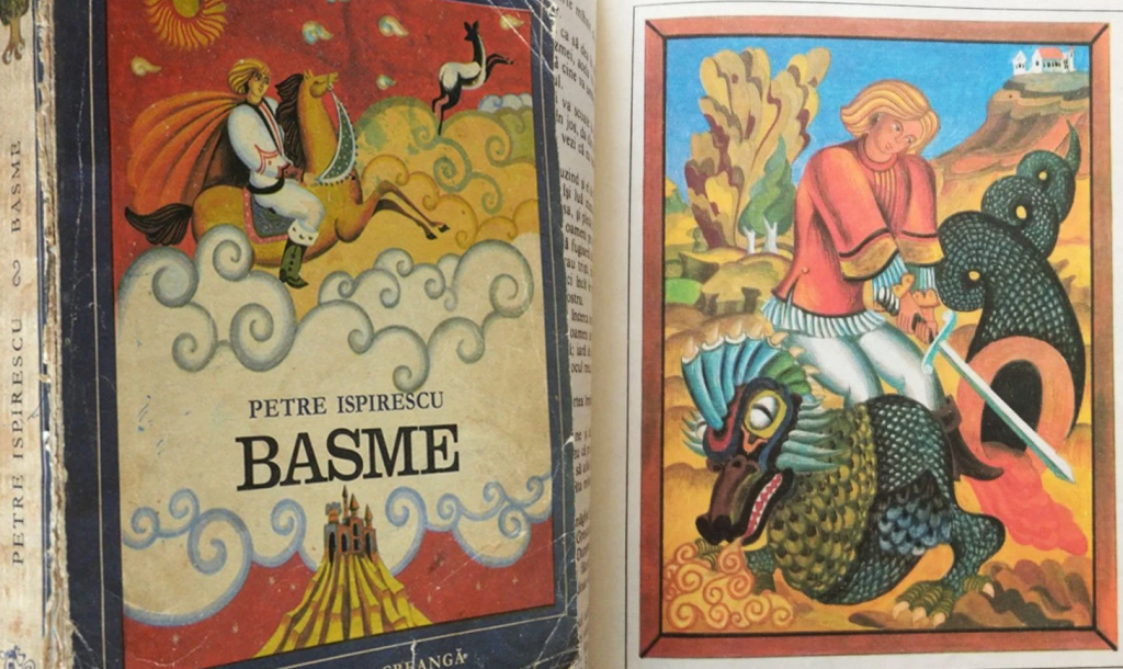 O are însă vecina noastră, cea de pe vale – pentru că în satul meu vecin poate fi și cel de la două case, și cel de peste un deal – , prietena de copilărie a mamei mele care are, la rându-i, doi copii de seama noastră. Deși lor nu le plac poveștile, aceștia sunt norocoșii proprietari ai volumului gros, plin de povestiri frumoase, cu desene colorate, mari… Acolo, pe una din pagini, trupul mătăhălos al unui balaur zace tăiat, cu despicătura ca o peșteră din care curge sânge mult.