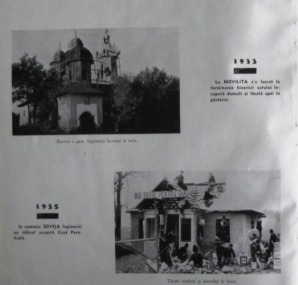 Dealtfel, în cartea „Tabăra de muncă, la pagina unde sunt expuse realizările din județul Putna, există și o fotografie cu biserica din Movilița pe care legionarii se laudă că au terminat-o în 1933.