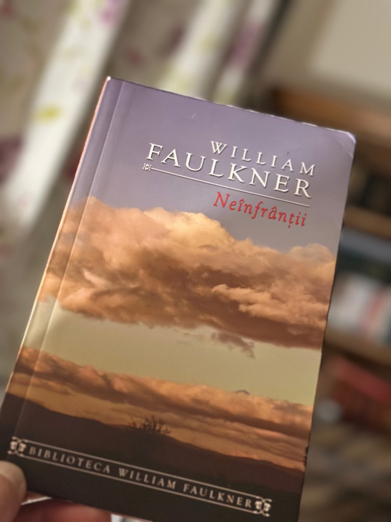 “Neînfrânții” e o carte total diferită de literatura europeană clasică, cunoscută. În primul rând pentru epocă, pentru evenimente, dar mai ales pentru stilul unic, faulknian, în a trata personajele sale. Fiecare cuvânt, fiecare frază sau înșiruire de fraze sunt atent concepute pentru a cunoaște personajele și a te transpune în atmosferă cât mai fidel posibil. Spre deosebire de Hamingway, cu al său stil minimalist, W. Faulkner e dens, plin de patos și de conștiință psihologică, cu sintaxă sinuoasă și calupuri de text lungi, care dau greutate și profunzime exprimării. Fluxul de conștiință, caracteristic scrierilor sale, intră în mintea și sufletul personajelor realizând o scanare minuțioasă a gândurilor lor, așa cum vin ele, în forma brută, alambicată, înainte de a se organiza în gândire logică.